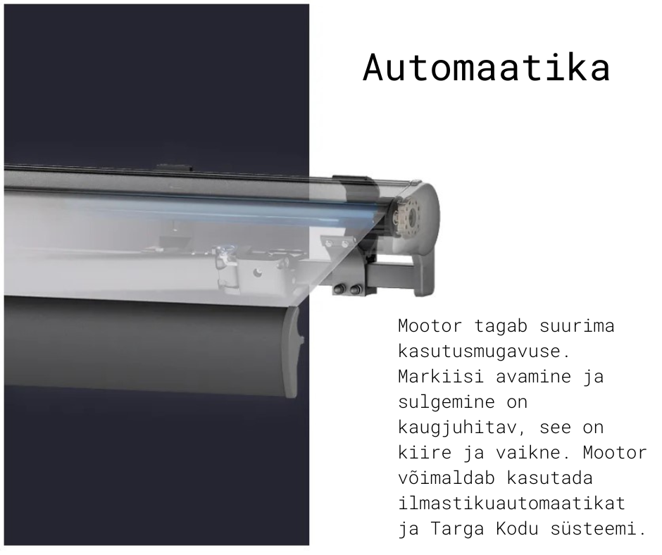 Lihtne konstruktsioon ja kõrge kvaliteet tagavad markiisile pika eluea.